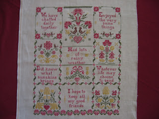 One lucky winner today will get my Friendship Tribute Sampler pattern. It has an alternate ending on this sampler, you choose which one you want. One says I hope to keep all my good friends. The other ending is I hope to keep you my good friend. One to keep and the other makes a great gift.